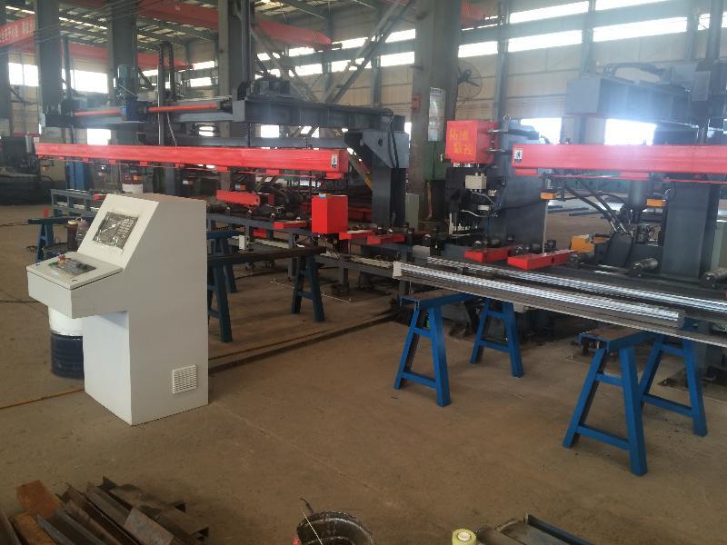 數控板材自動沖孔生產線 數控板材自動沖孔生產線 用途:此設備為組合設備。由帶料送料機、液壓沖壓主機、自動上下料裝置等組成,形成沖壓生產線,加工長條帶料。電氣部分采用送進伺服電機及驅動部件,配置控制系統及操作臺。一、技術參數1、產品基本參數 1)工件尺寸(長度):1500-8000mm2)工件厚度:3)工件寬度:8-20mm50-300mm4)機床公稱力:1200 KN5)模位數量:2 個6)夾鉗